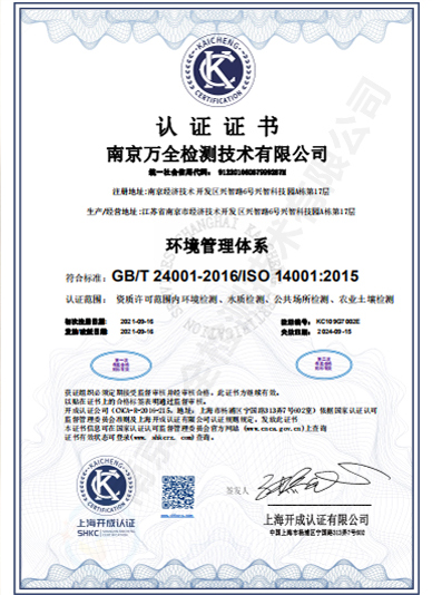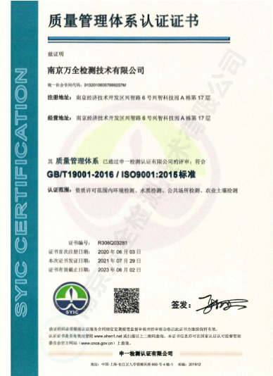 南京萬全檢測技術有限公司,籌建于2013年1月,注冊資金500萬,公司坐落于南京經濟技術開發(fā)區興智路6號興智科技園A棟17層,實驗室占地面積1750余平米。公司是一家獲得省級CMA計量認證資質、具有獨立法人、政府認可的綜合性、專業性的檢測機構。環(huán)境監(jiān)測業務是其重要的檢測業務之一,目前已獲得省級計量資格認可項目314項,設備齊全,具有較強的技術能力。